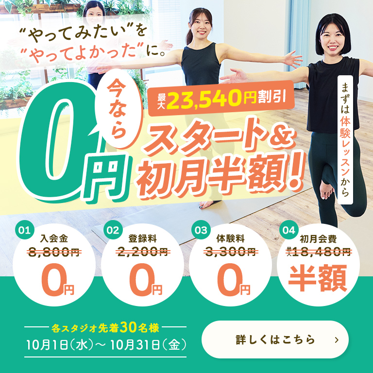 ヨガ・ピラティス・ホイールヨガ・バンドフローヨガの場合、運動量の目安として★の数で運動強度の表記がございますので、はじめての方はそちらをご参考にお選びいただくと安心です。